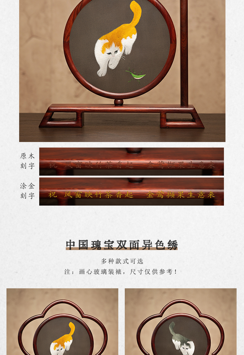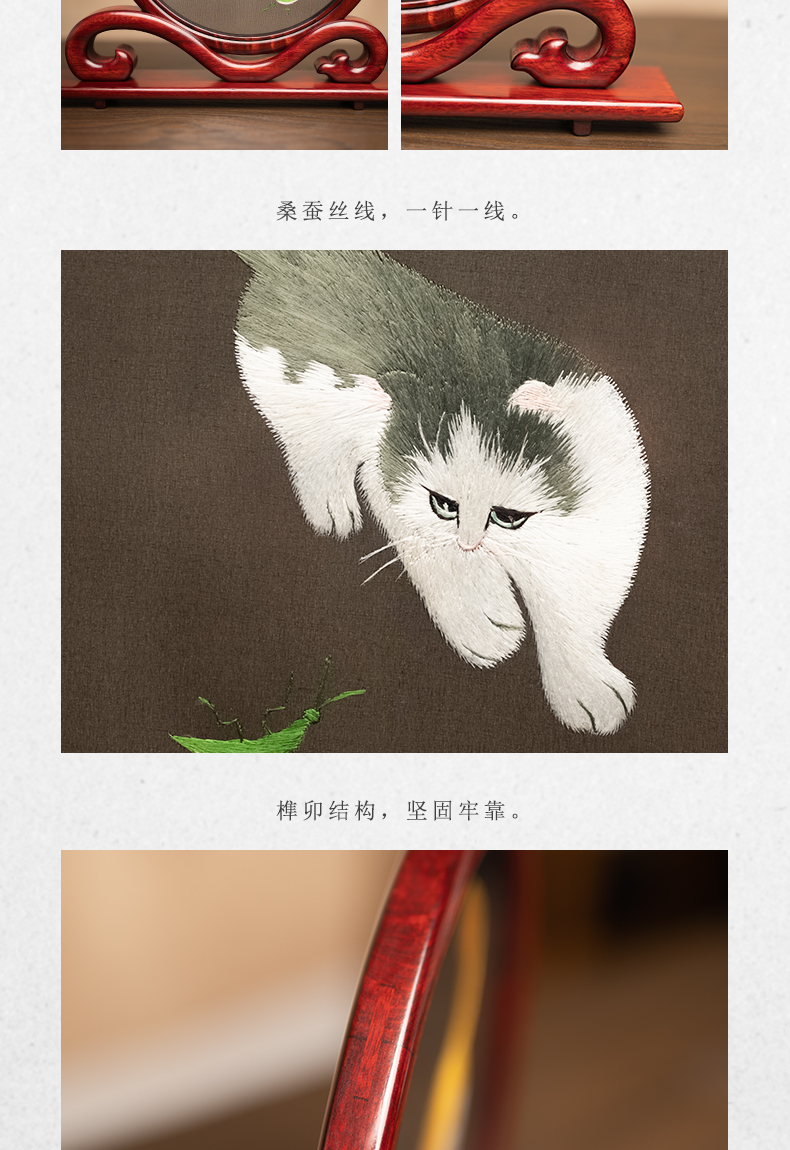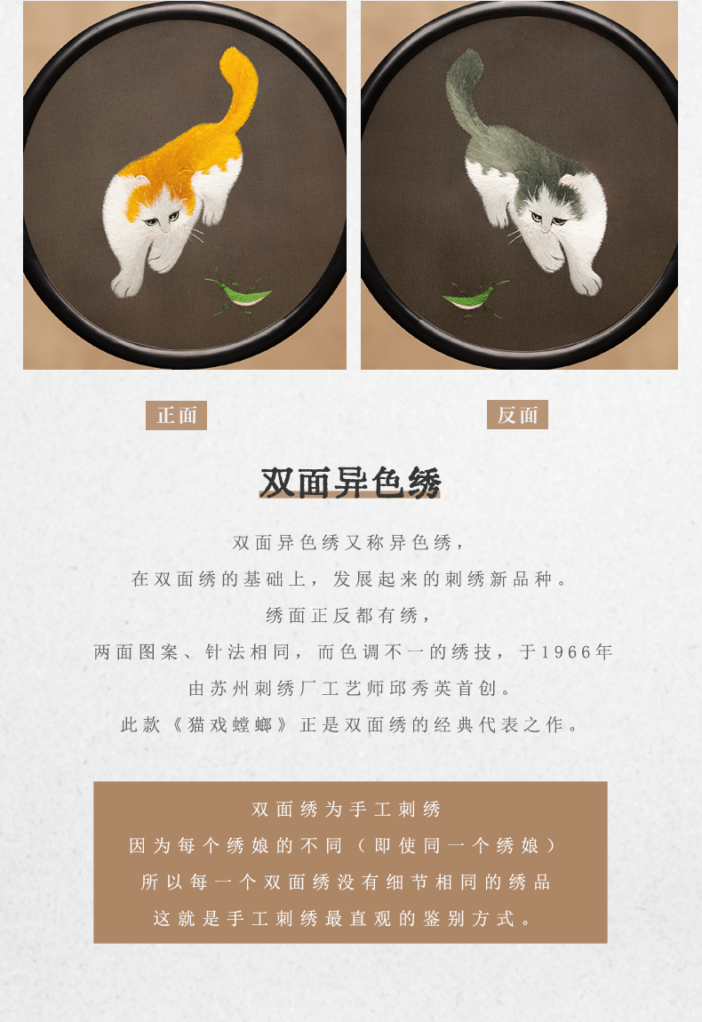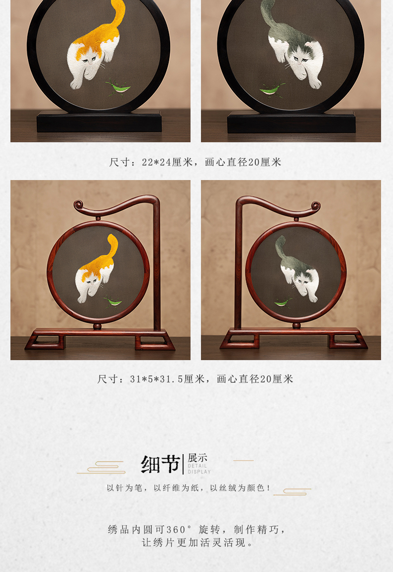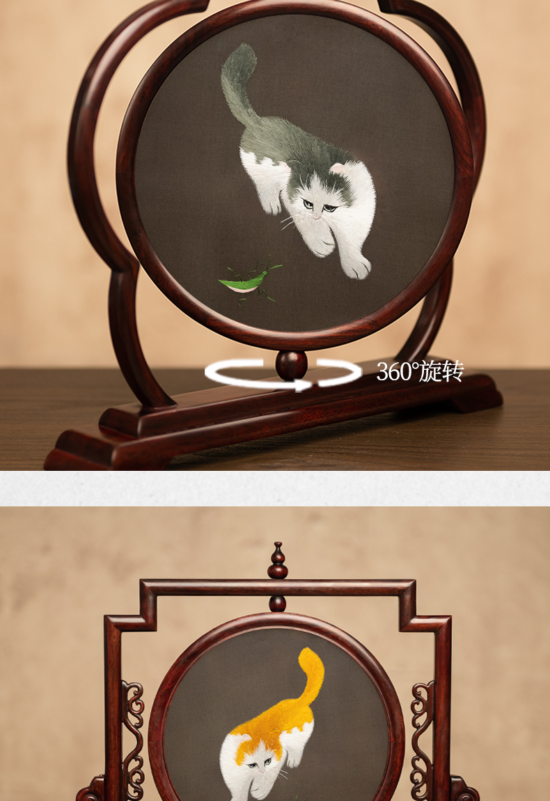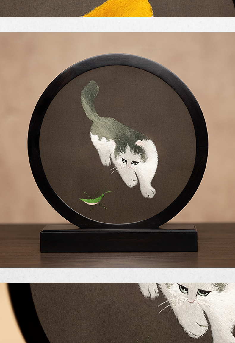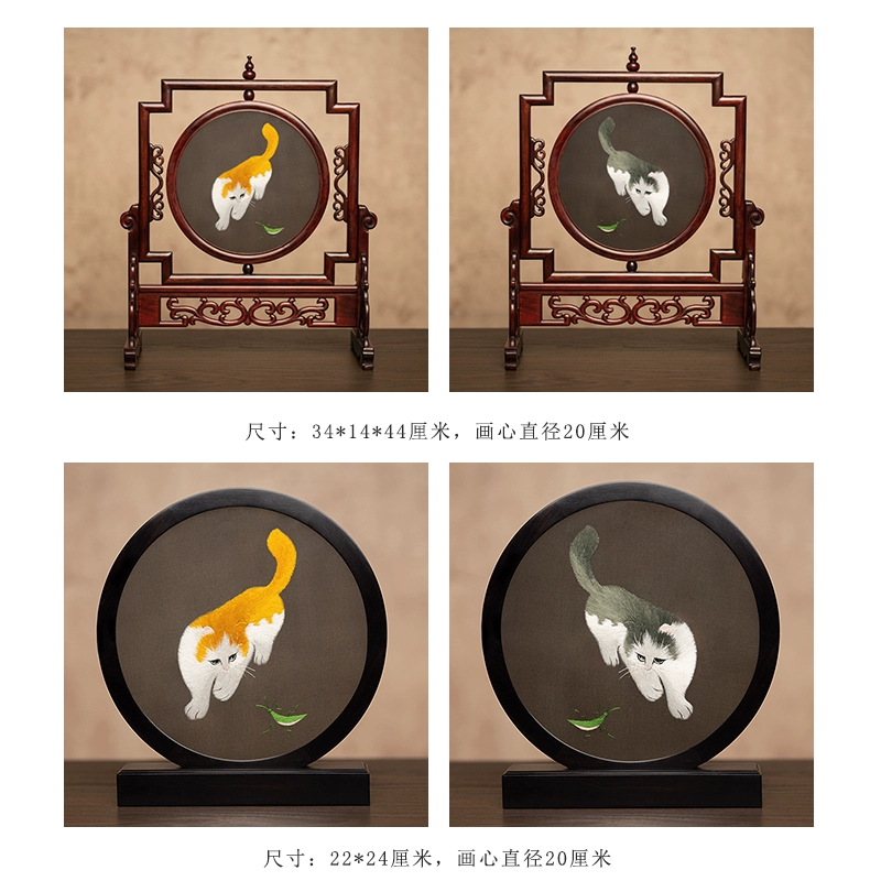 Home / Products / 苏绣摆件双面异色绣猫戏螳螂中国风刺绣经典工艺品摆台礼品送领导