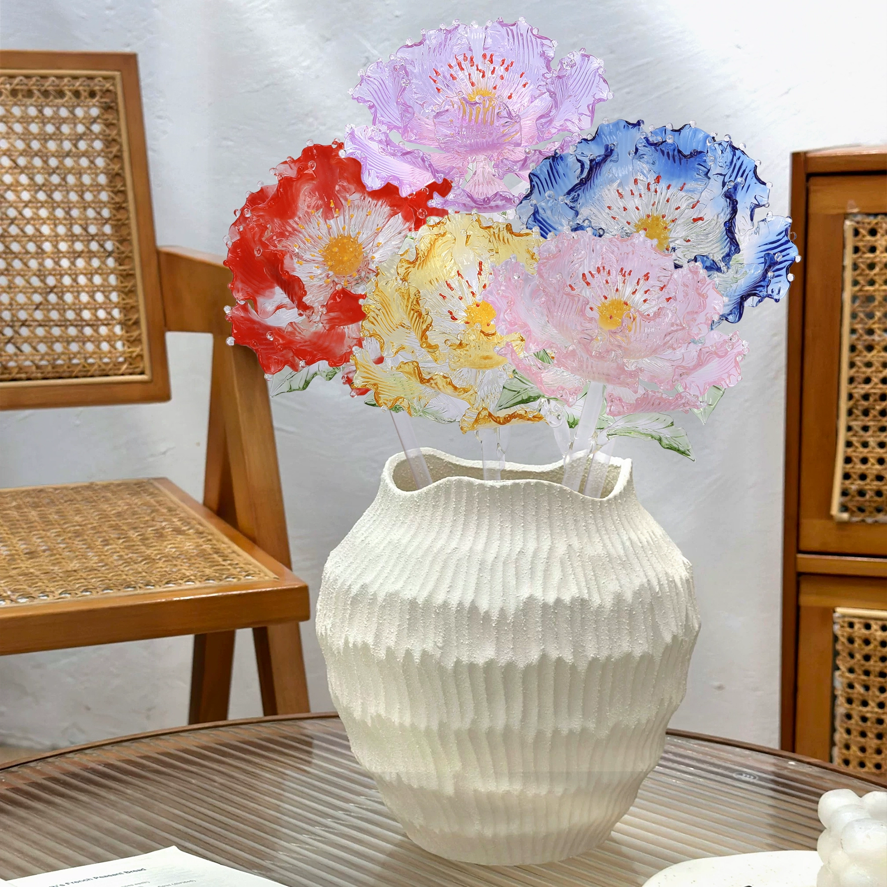 琉璃牡丹花轻奢摆件家居装饰客厅仿真手工永生玻璃花礼物淄博非遗